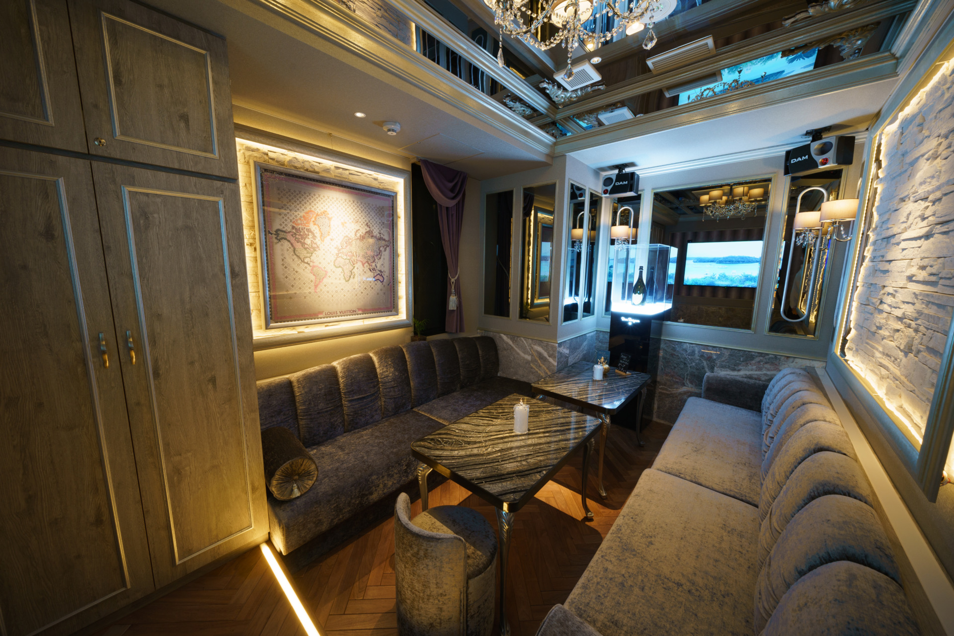 プラチナルームは煌びやかな内装、ゴールドルームは落ち着いた重厚感のある内装。